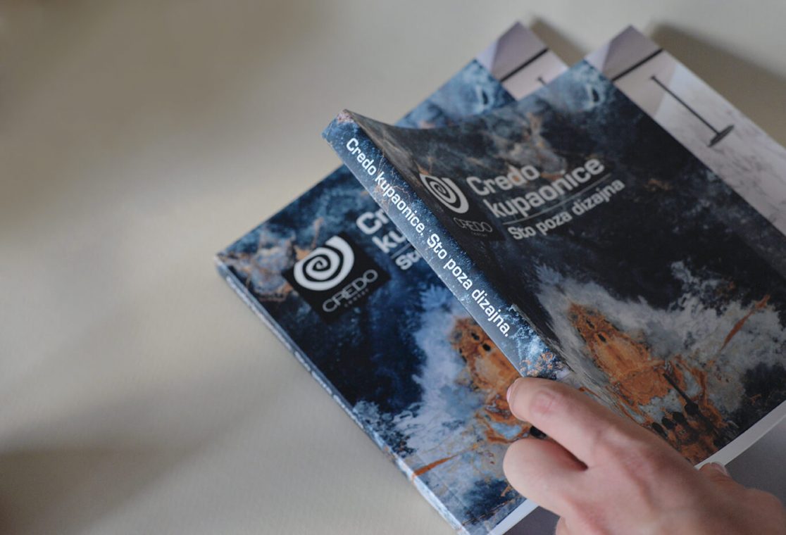 The whole catalog follows the same layout – minimalism: 2 defined colors and decent typography. The catalog is printed on matte-coated paper, and the digital version can be found on the Credo Center website. The cover of the catalog is a photo from the Infinity collection while the background is simple, black with a logo.