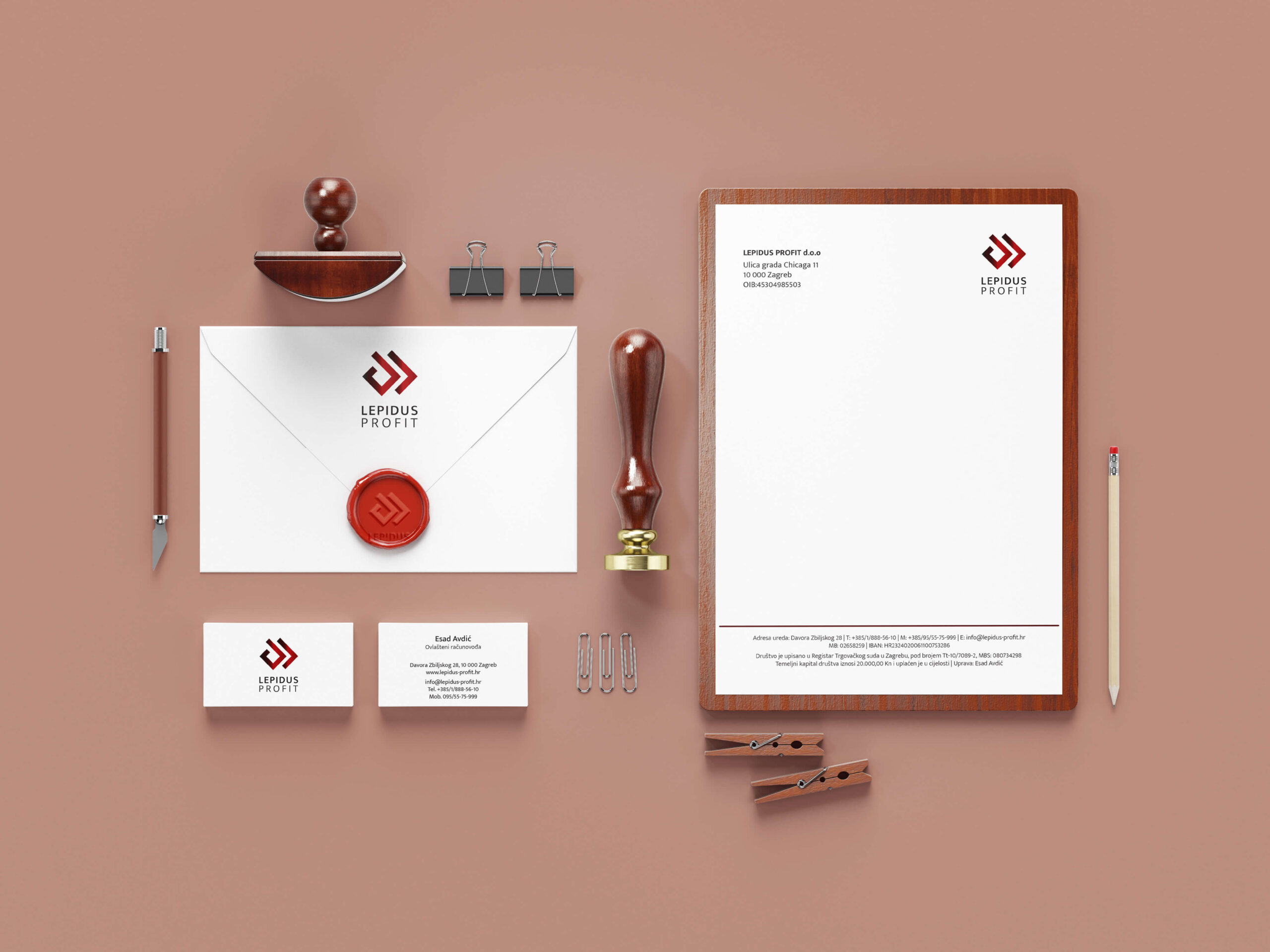 Our client, the owner of the successful accounting firm Lepidus Profit, requested design of a new logo. It was important for the logo design to be unique and to subtly describe the business of finance and accounting. Additionally, the client wanted to achieve a specific look using color, which we solved with a gradient from dark to light red.