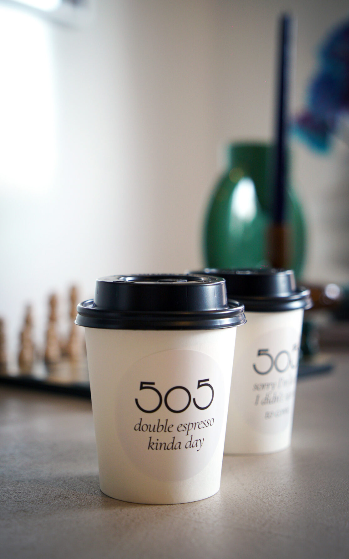 Uz logotip 505 nismo željeli koristiti cafe bar nego smo osmislili slogan – “Every moment is brewed to perfection”. Time smo suptilno naglasili o čemu je riječ i dobili još bolji vizualni efekt.