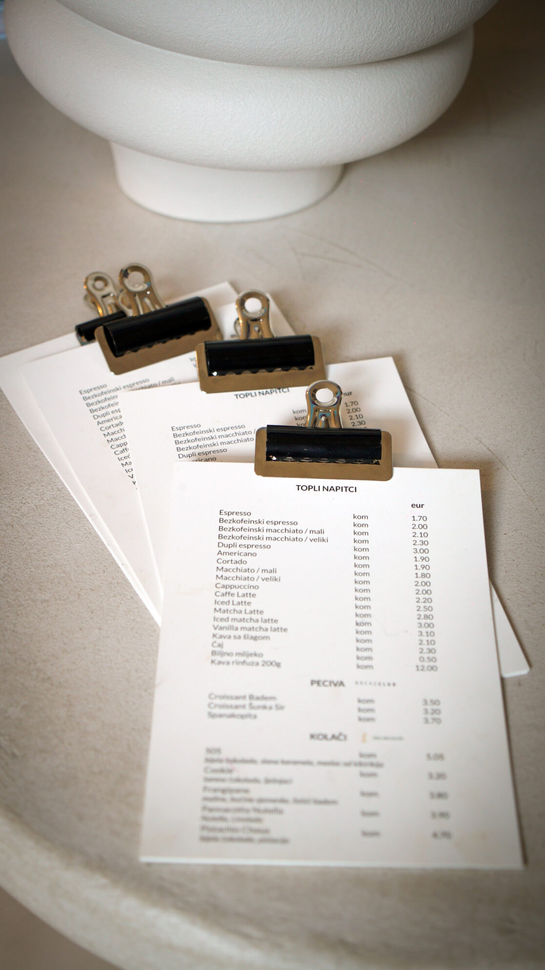 Kada smo definirali boju, tipografiju i logotip, dizajnirali smo branding materijale koji se spontano provlače kroz cijeli bar.