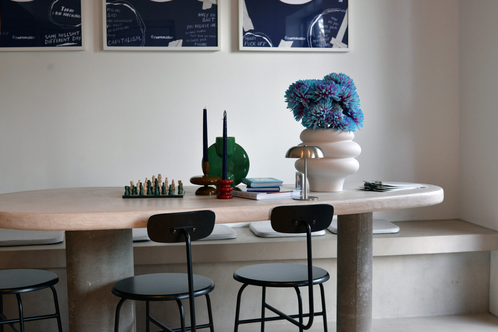 “Željeli smo stvoriti jednostavan prostor koji odiše minimalizmom uz dašak eklektike. Svijetli tonovi, igra tekstura, mikrocement na podu i na namještaju osvježili su zatečeni prostor, a dodatno je vizualno otvoren ostakljenim centralnim kubusom.“