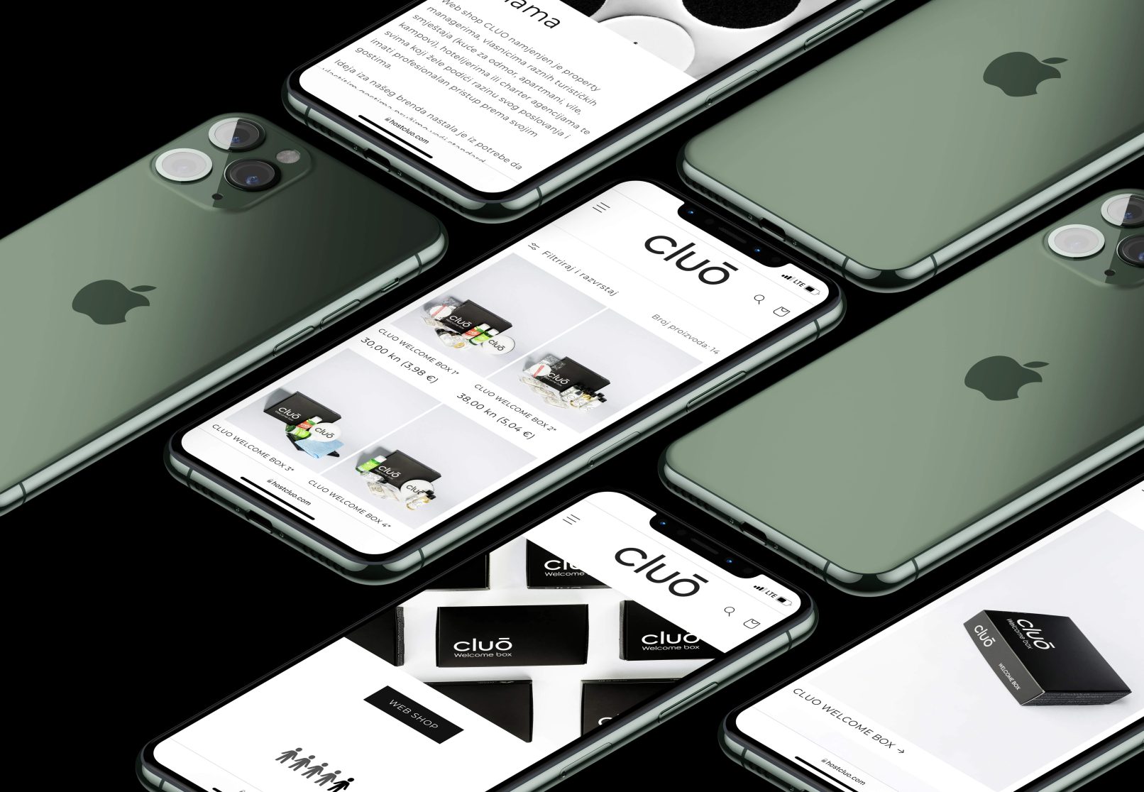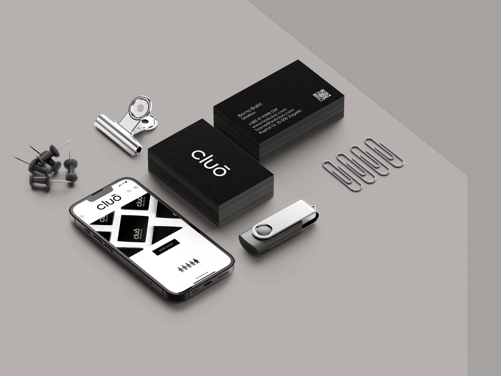 Nakon osmišljavanja snažnog imena, dizajnirali smo snažan logotip. Vođeni idejom čistoće, jednakim i zaobljenim linijama stvorili smo minimalizam i pročišćenu snagu. Nastao je brand CLUO. Jednostavno i čisto. Branding boje su crna i bijela. Ne koriste se drugi elementi osim tipografije.