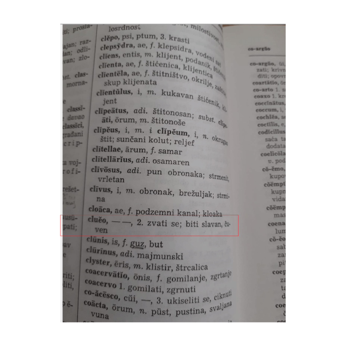 Razmišljajući o imenu željeli smo obuhvatiti značenja – potreba, čuvenost, čistoća i higijena. Osmislili smo jedinstveno ime koje potječe od latinske riječi clueo što znači zvati se, biti slavan, biti čuven, biti čist, imati dobru reputaciju. Alternativni oblik riječi clueo je cluo.